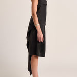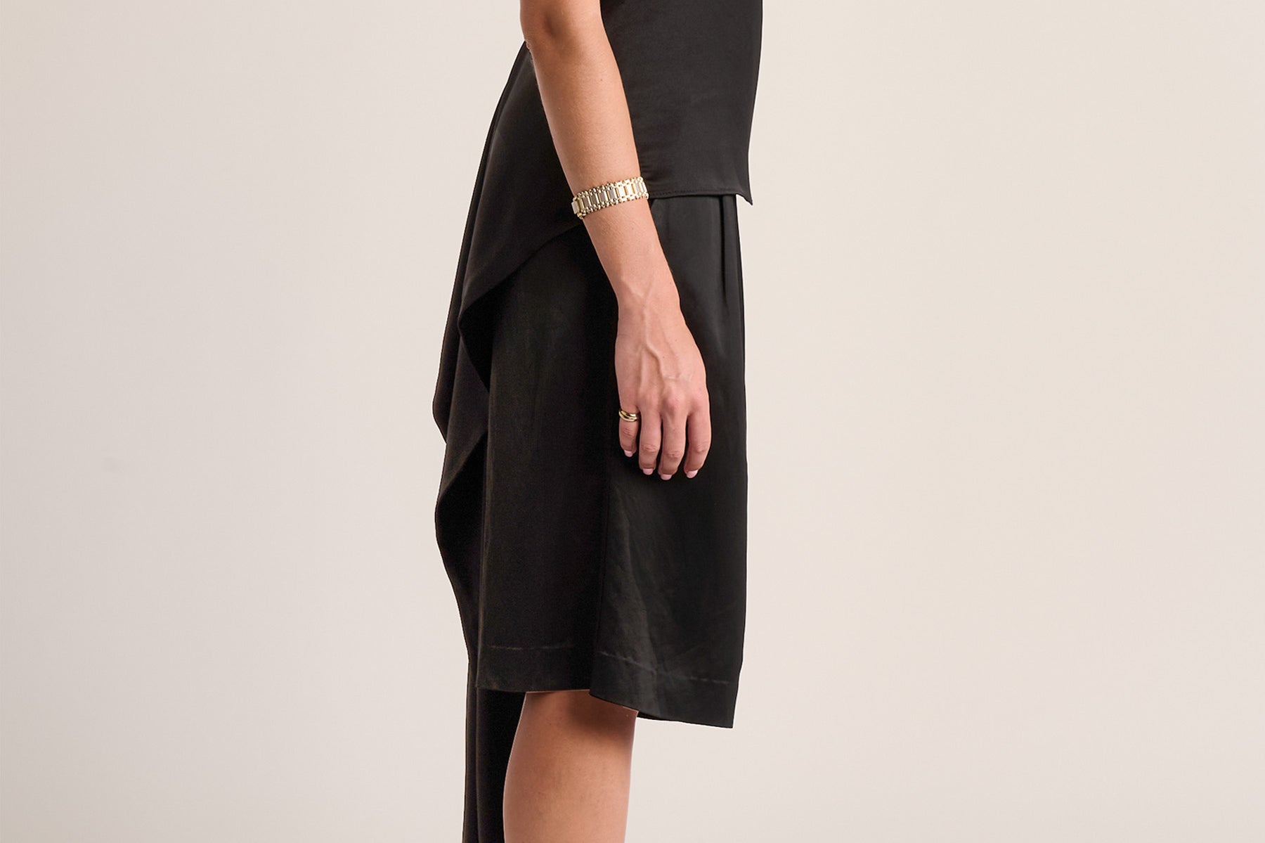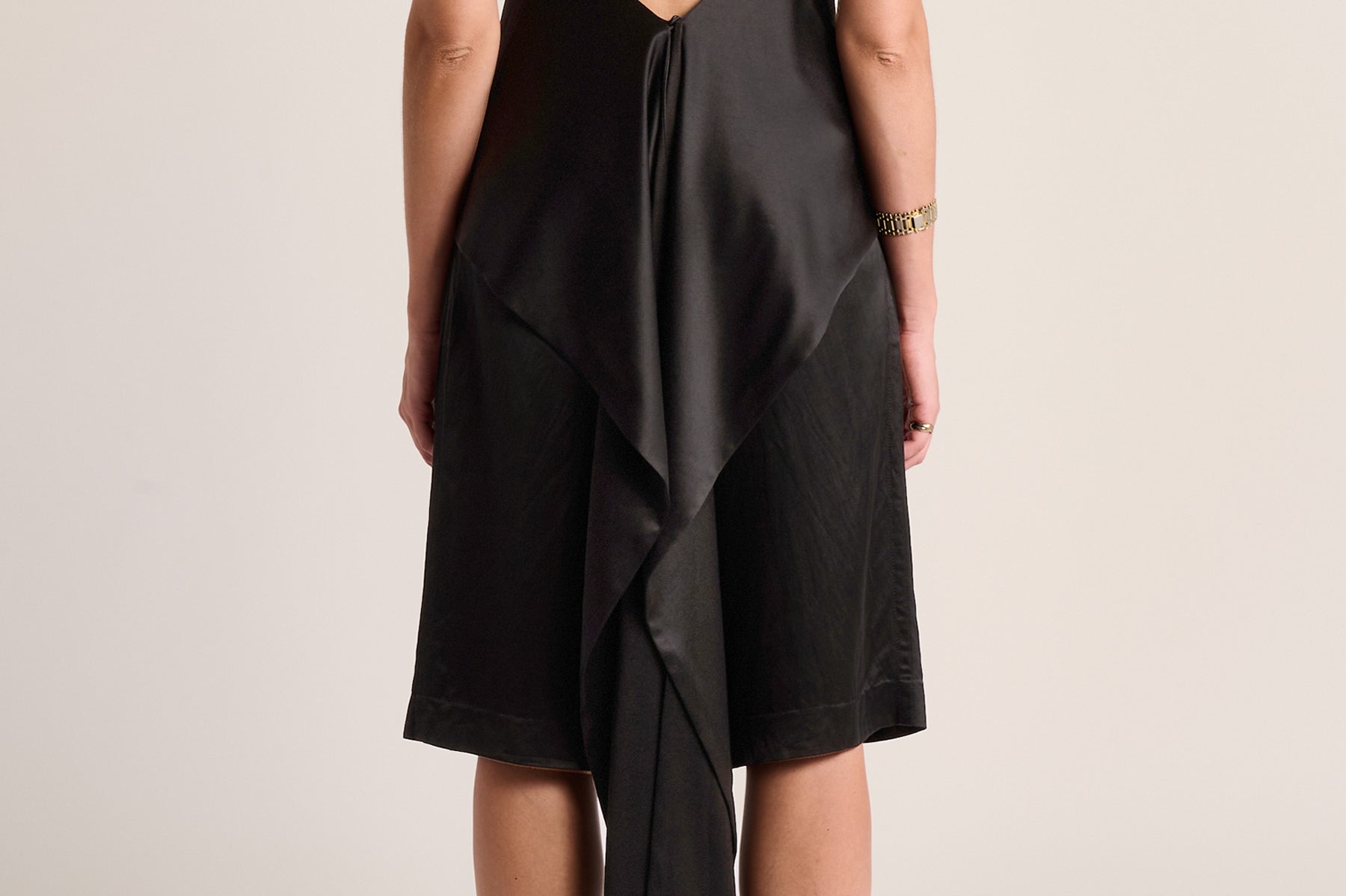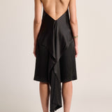 A fluid evening statement defined by a dramatic cowl halter and deep open back. Designed to be worn long-lined through the back or wrapped at the waist for a more relaxed allure, this piece offers refined adaptability for modern dressing.