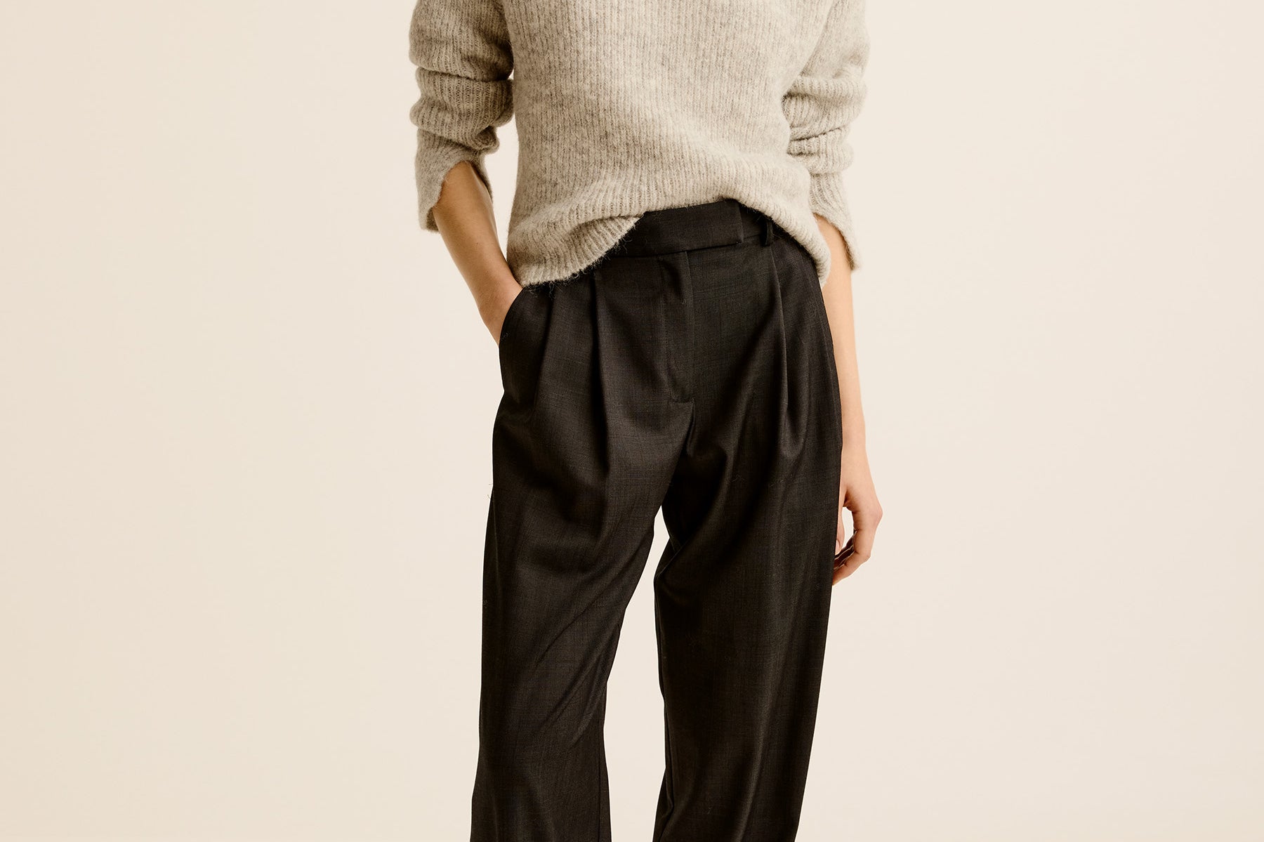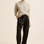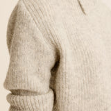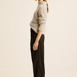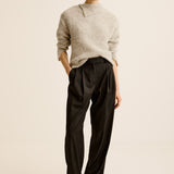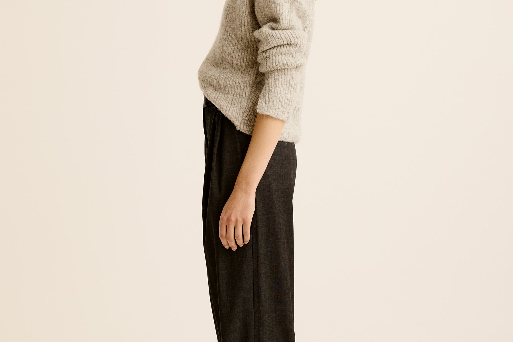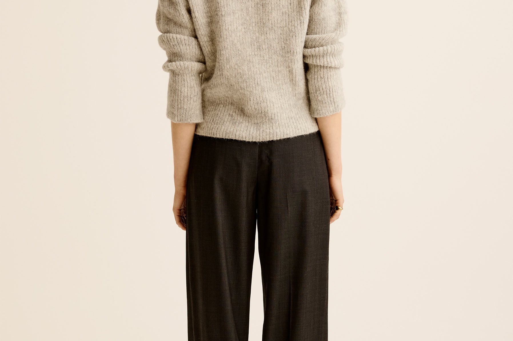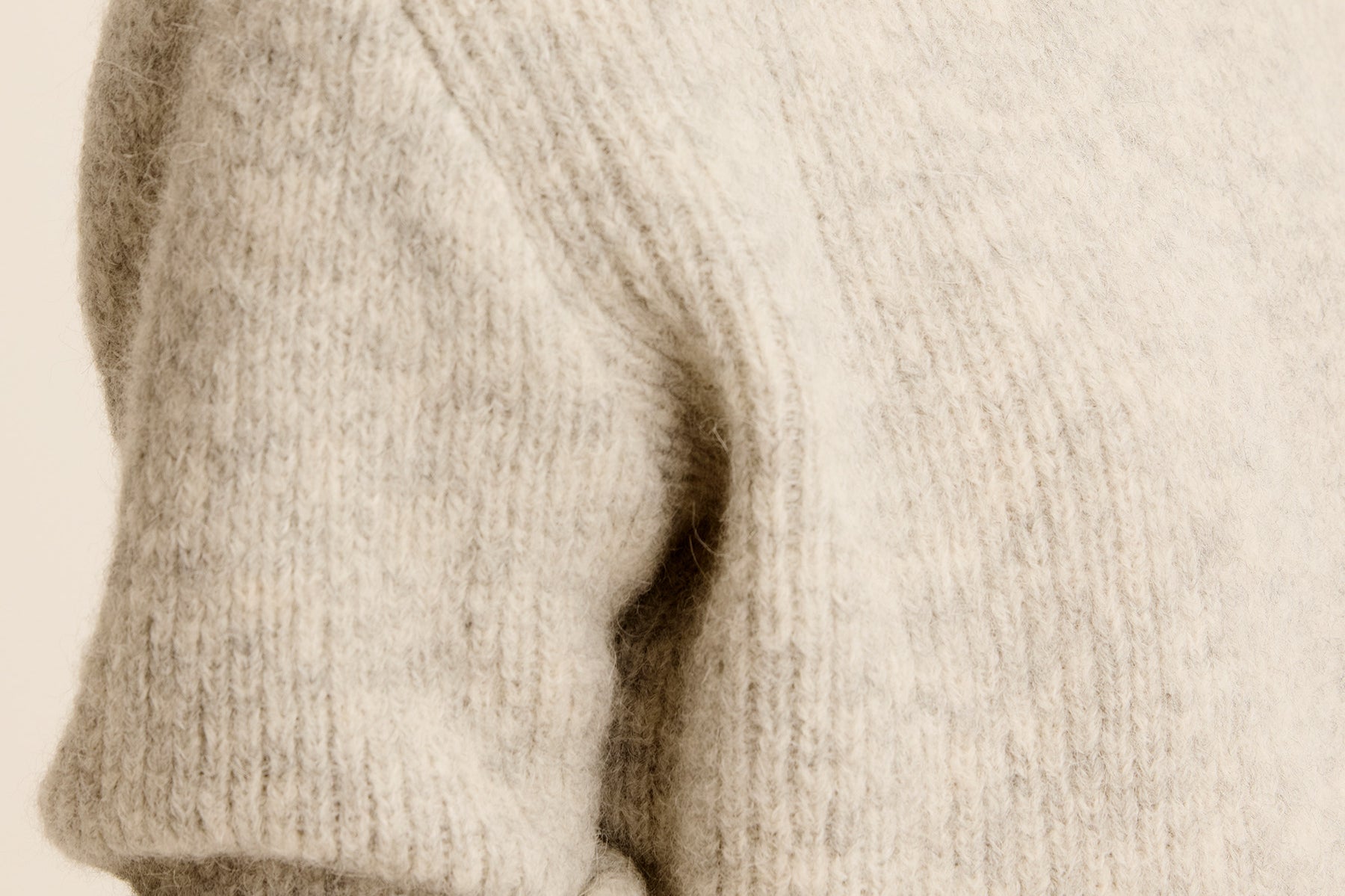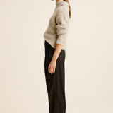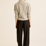 A statement in silhouette and texture. This oversized sweater is crafted from a plush, textural alpaca blend in grey marle. Featuring a unique split turtleneck collar, it offers warmth, dimension, and elevated comfort — an indulgent winter essential.