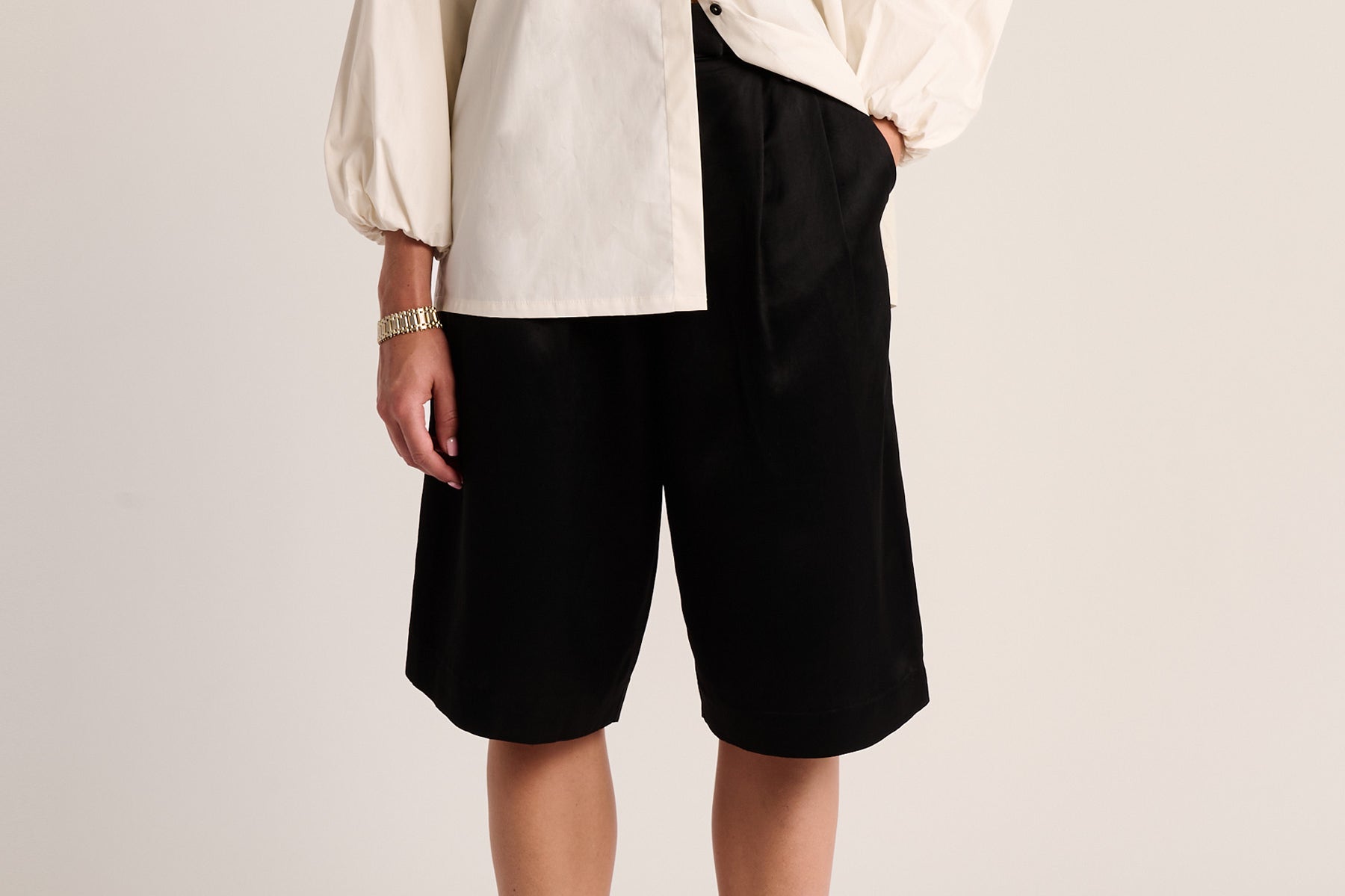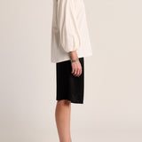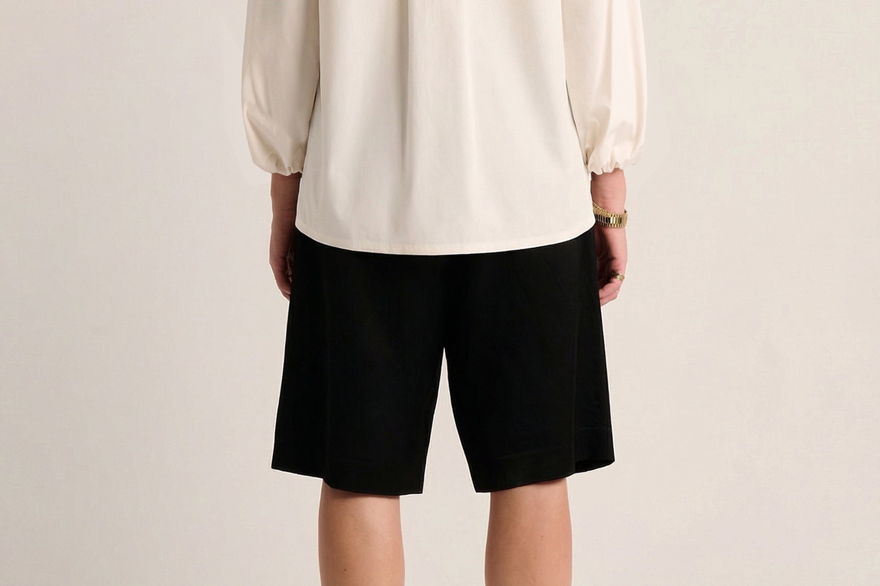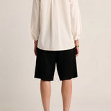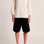 A minimal yet elevated cotton shirt designed with intention. Featuring subtle blouson sleeves, classic tailoring, and a comfortable elasticated cuff, this piece offers timeless versatility. Effortless to style and built for everyday wear.