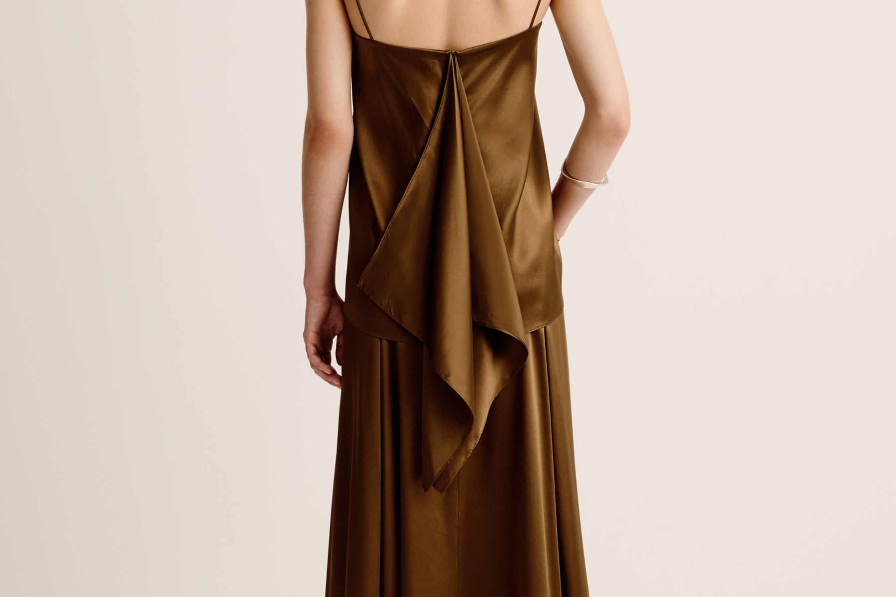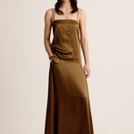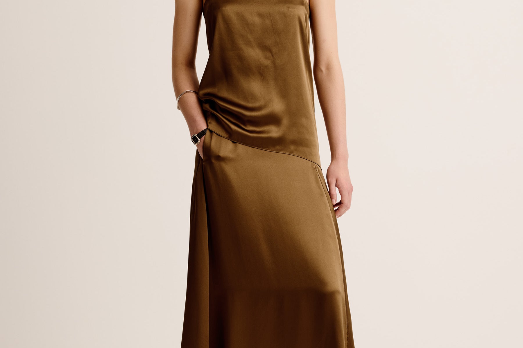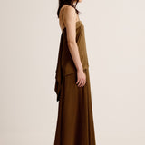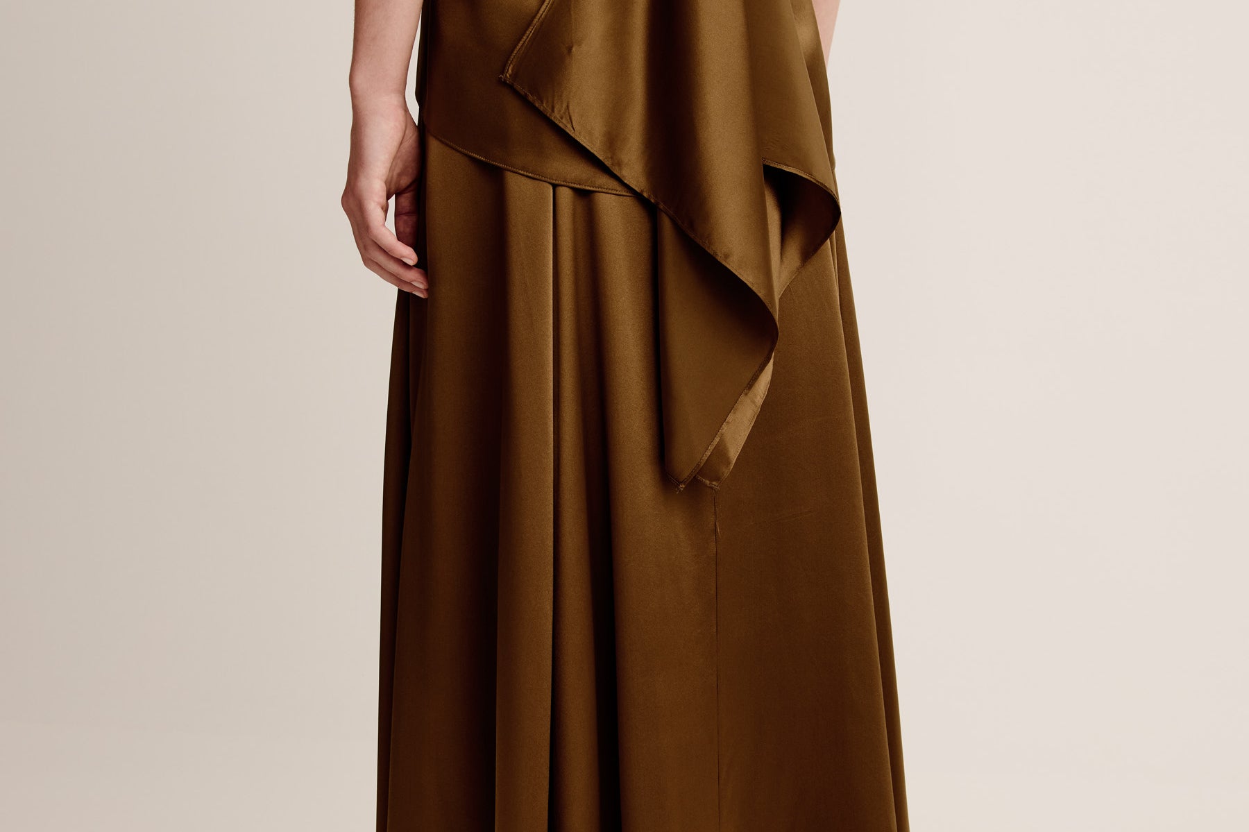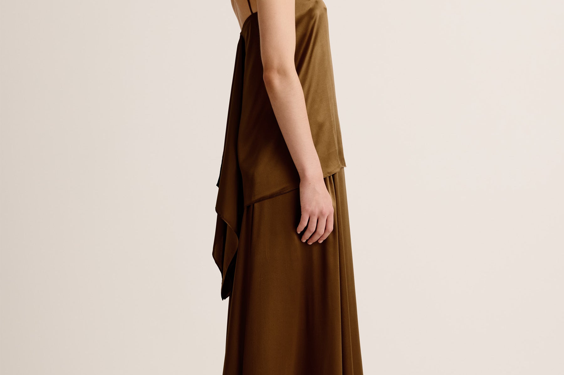 A new future classic, a forever ESSEntial. Dramatic and voluminous this high waisted maxi skirt features subtle pockets and modern panel details. Styled here with the Finesa Cami