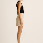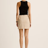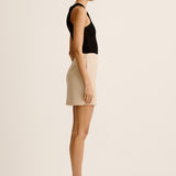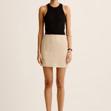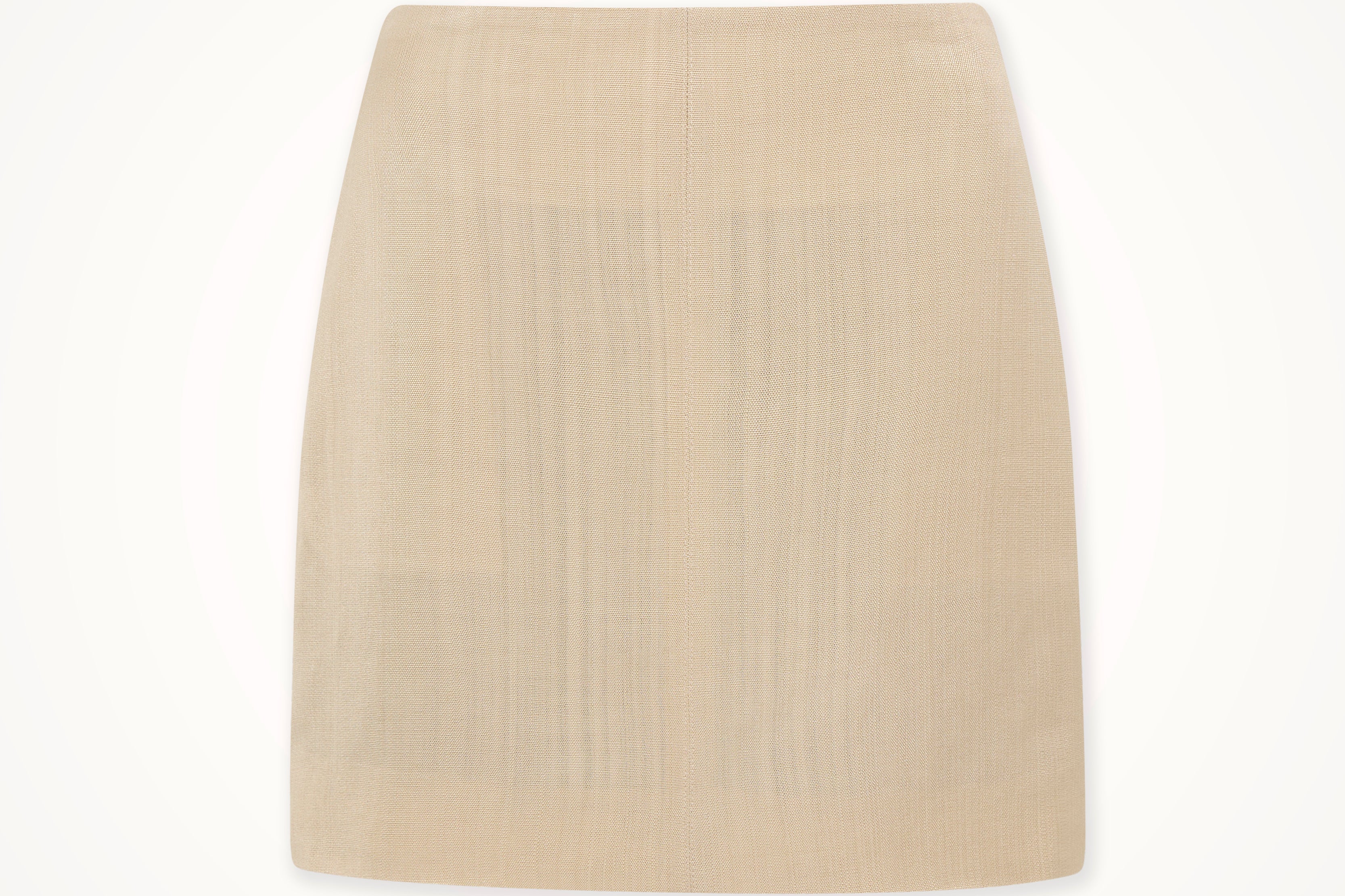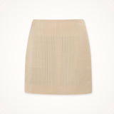 Epitomising ESSE's approach to minimalist, elevated wardrobe essentials. A tailored, high-waist mini skirt in a textured, technical fabrication.