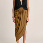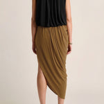 This skirt is defined by soft, angled draping that skims the body, creating a refined interplay of line and movement. Effortless, sculptural, and quietly confident, it anchors modern dressing with ease.